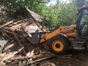 - Ограниченные условия. Демонтаж в черте города, рядом с другими постройками или коммуникациями требует ювелирной точности и часто проводим вручную или частично с применением спецтехники.